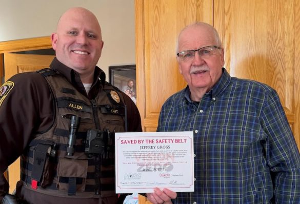 North Dakota – The North Dakota Highway Patrol recognized Jeffrey Gross on February 24, 2026, with the Saved by the Belt Award for a decision that saved his life nearly a year earlier. On April 14, 2025, Gross was driving westbound on I-94 in Stutsman…